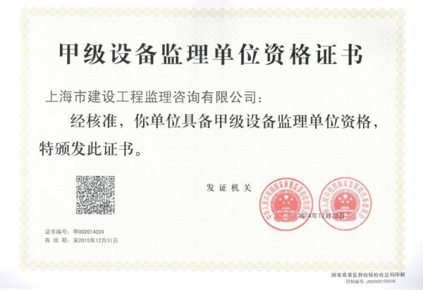 甲级设备监理单位资格证书