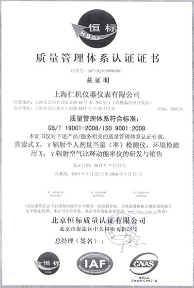 ISO9001质量管理体系认证证书