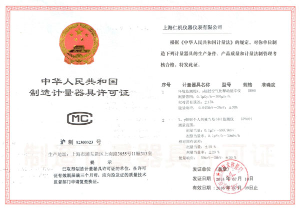 制造计量器具许可证