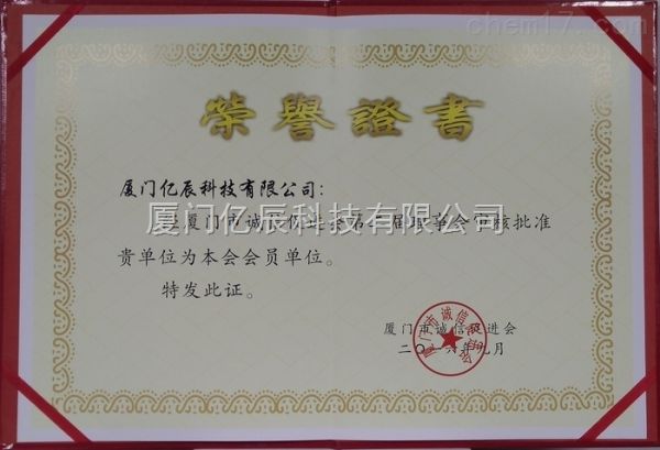 厦门市诚信促进会-第二届理事会会员-荣誉证书