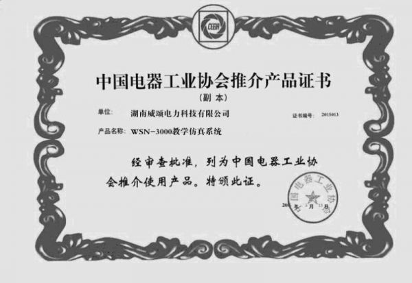 中国电器工业协会推介产品证书